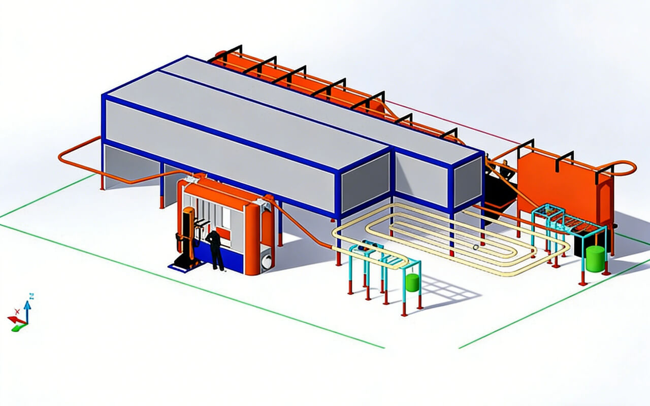 | Process Flow: Loading → Moisture Drying → Automatic Spraying → Manual Touch-up → Powder Curing →Workpiece Cooling → Unloading | |||