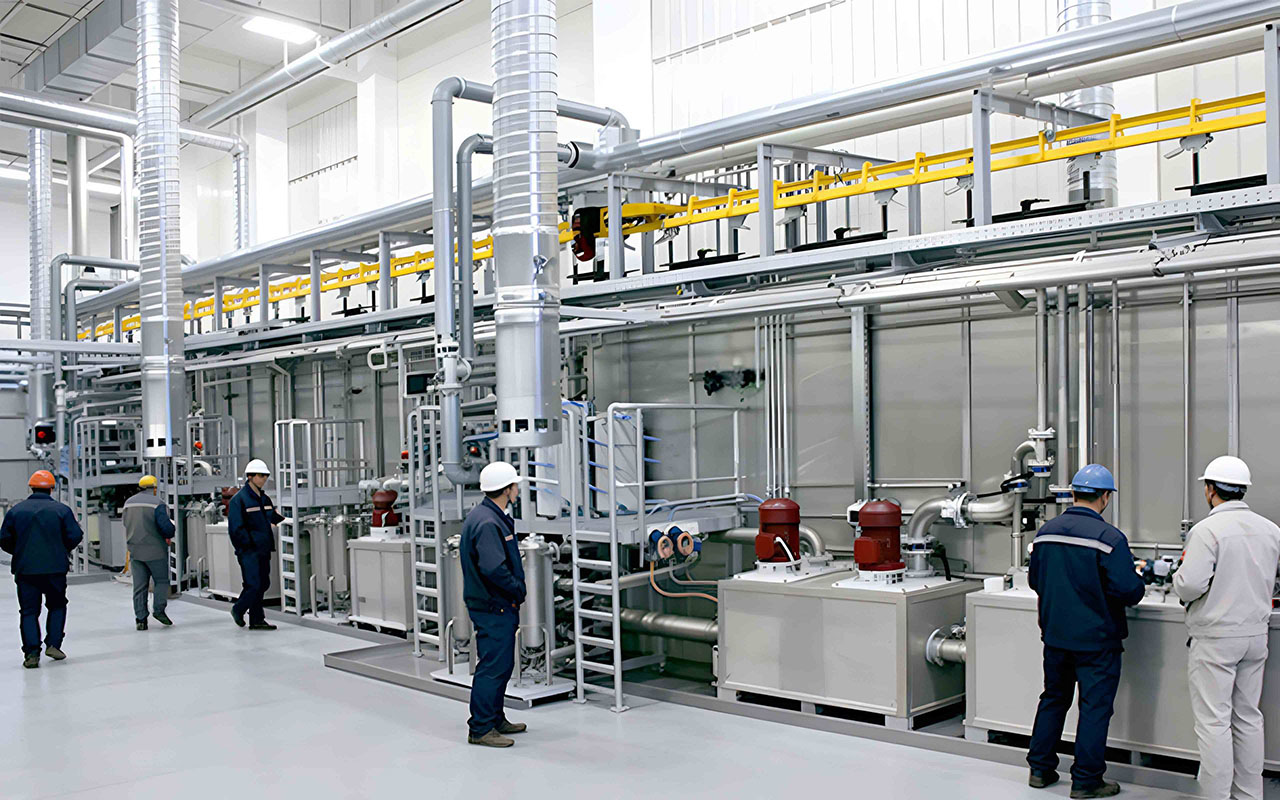 The constant temperature system used in electrophoretic coating equipment operates by compressing refrigerant through a compressor into a high-temperature, high-pressure gaseous state. Controlled by a four-way valve, the refrigerant passes through the condenser, capillary tube, and filter, where the flow direction is changed. When the refrigerant transitions from gas to liquid, it releases a large amount of heat; when it changes from liquid to gas, it absorbs a large amount of heat.